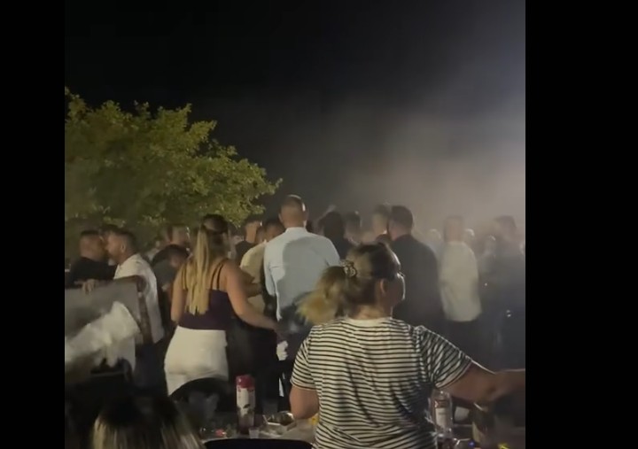 Σύμφωνα με βίντεο που κυκλοφόρησε στο TikTok και συγκέντρωσε εκατοντάδες χιλιάδες προβολές, η ένταση κλιμακώθηκε ραγδαία, με σπρωξίματα, γροθιές, αλλά και εκτόξευση μπουκαλιών, καρεκλών και τραπεζιών. Οι εικόνες προκάλεσαν αίσθηση και αγανάκτηση, καθώς το γλέντι μετατράπηκε σε πεδίο σύγκρουσης.