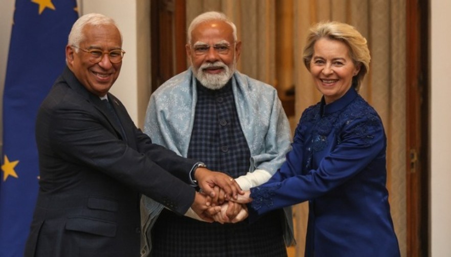 Η πρόεδρος της Ευρωπαϊκής Επιτροπής Ούρσουλα φον ντερ Λάιεν δήλωσε σήμερα ότι η εμπορική συμφωνία ελεύθερων συναλλαγών, την οποία συνήψε με την Ινδία, θα επιτρέψει να δημιουργηθεί μια «ζώνη ελεύθερου εμπορίου 2 δισεκατομμυρίων ανθρώπων».
