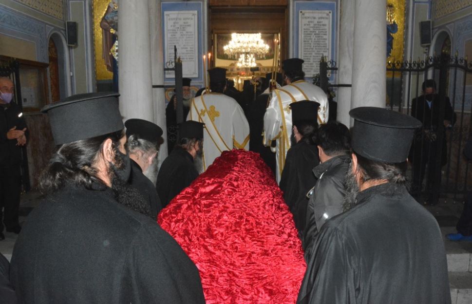 Σε βαρύ κλίμα συγκίνησης υποδέχθηκαν αργά το απόγευμα της Δευτέρας 3ης Ιανουαρίου 2022 ο ιερός κλήρος και ο πιστός λαός της Ιεράς Μητροπόλεως Αιτωλίας και Ακαρνανίας το σεπτό σκήνωμα του μακαριστού Ποιμενάρχου, Μητροπολίτου Αιτωλίας και Ακαρνανίας κυρού Κοσμά, στον Ιερό Μητροπολιτικό Ναό Αγίου Σπυρίδωνος Ιεράς Πόλεως Μεσολογγίου.