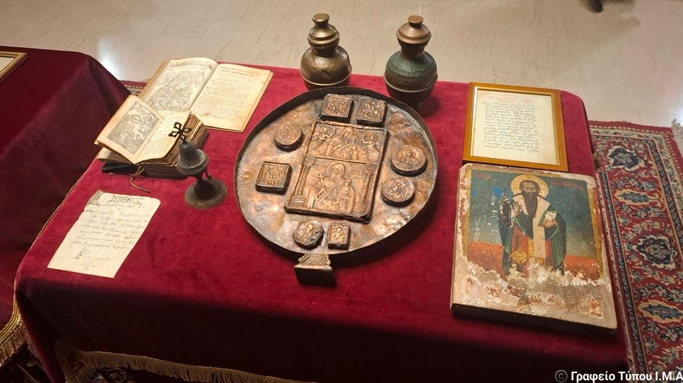 Ο συλλέκτης Σπύρος Κατσίρας παρουσίασε τα εκθέματα και ξεναγήθηκε μαζί με τους παρευρισκόμενους, ενώ έλαβε επίσης το αναμνηστικό μετάλλιο της Μητρόπολης.